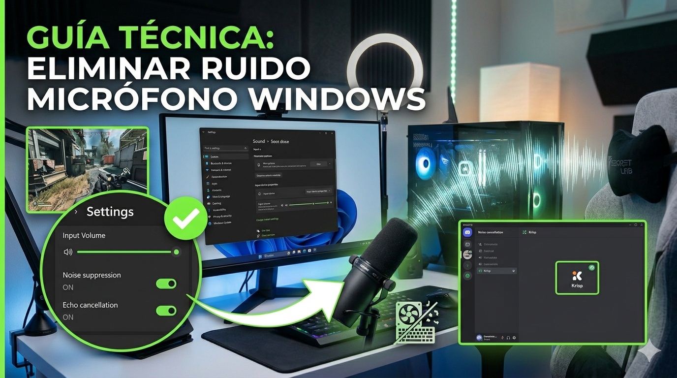 Eliminar el ruido del micrófono en Windows implica activar la Supresión de Ruido en los ajustes de sonido del sistema, reducir la Ganancia (Boost) para evitar el siseo eléctrico y utilizar filtros de software como los de OBS Studio o Discord. La clave técnica reside en establecer un umbral de puerta de ruido que bloquee sonidos bajos mientras preserva la claridad de la voz humana.